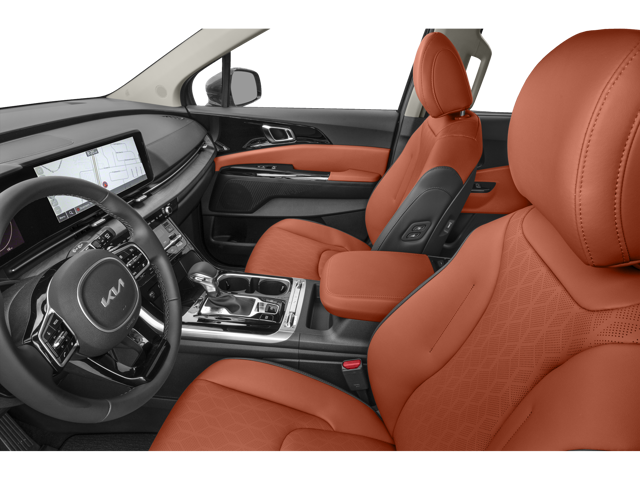 At the top of the trim ladder, the SX Prestige has the Kia dual pane sunroof and pure leather upholstery. The SX Prestige has ventilated front seats and the option of second-row ventilated seats. It has a 12-speaker Bose audio system. This is the first year that this model has standard 8-person Slide Flex seating, and it’s the first time it is being offered with second-row VIP lounge seats.