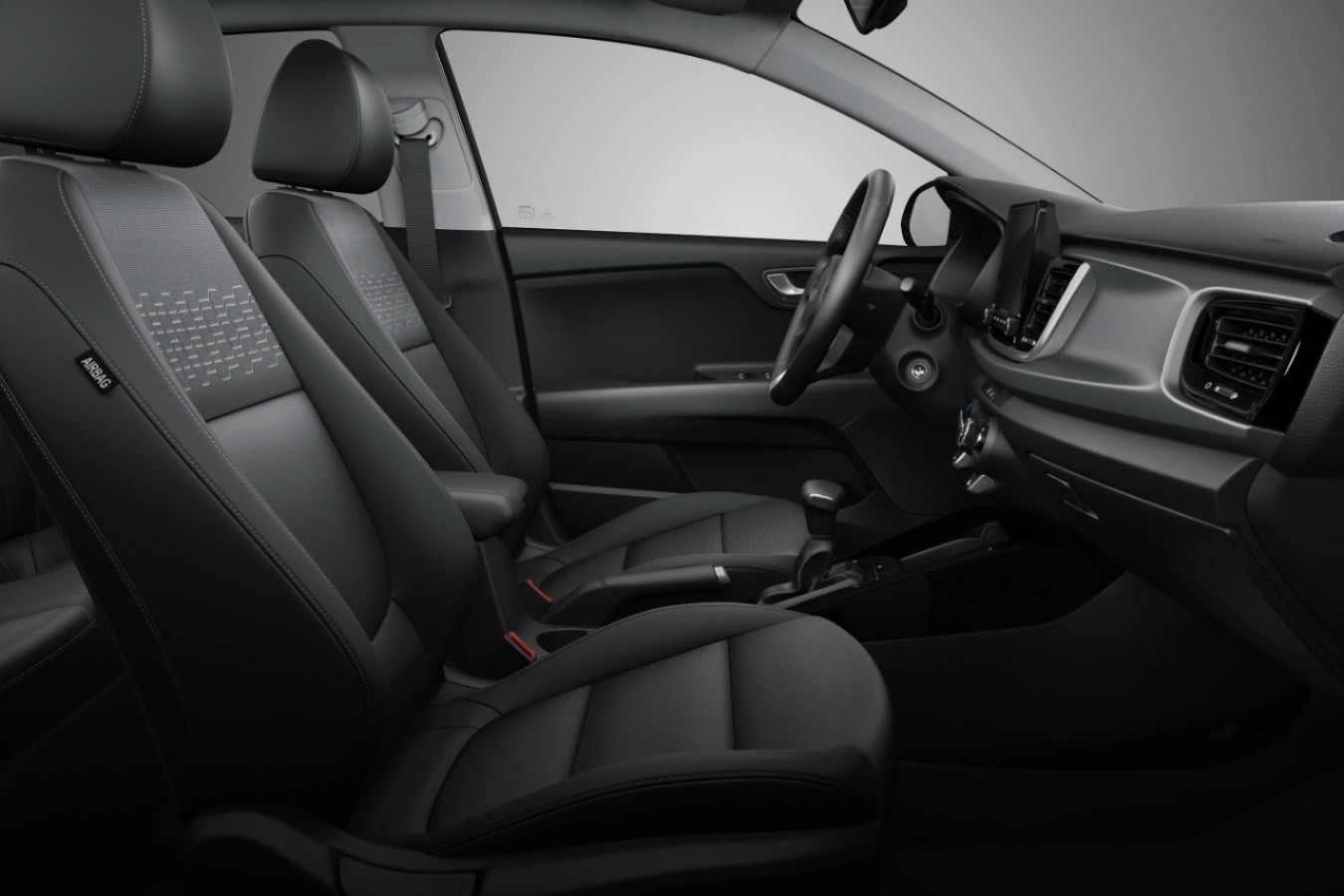 The cabin of the Kia Rio is characterized by a clean and minimalist design, reflecting a sense of refinement. Textured materials contribute to a sense of quality and attention to detail. The straightforward controls and ergonomic cockpit layout are sure to please drivers, providing a user-friendly and intuitive experience.